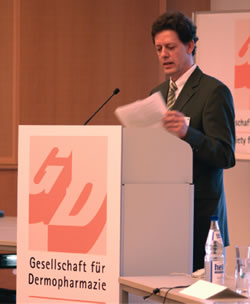 News The GD president, Dr. Joachim Kresken, Viersen, was proud to inform that solely members and friends of the society as well as its own economic enterprise, the ID-Institute for Dermopharmacy GmbH, were able to organize the entire conference. The meeting has been supported by a large number of sponsors to whom the president expressed his thanks for their generous assistance in his welcoming speech. Kresken emphasized that the program of the GD's Annual Meeting has never before been as comprehensive as that year. Besides the scientific main program with lectures from the areas Dermopharmaceutic Chemistry and Quality Assurance, Pharmaceutical Technology and Biopharmacy, Dermocosmetics as well as Dermatopharmacology and Dermatotherapy, workshops took place dealing with the subjects "Practice-oriented Prescription in 3rd Millenium" and "Dermocosmetic Sun Protection", organized by the GD departments Extemporaneous Preparations and Dermocosmetics. An additional part of the program was a satellite symposium with the title "Cosmetics - Effective and Safe", which had been organized by the Industrieverband Körperpflege- und Waschmittel e.V. (IKW) [Industrial Association Personal Hygiene and Detergents].