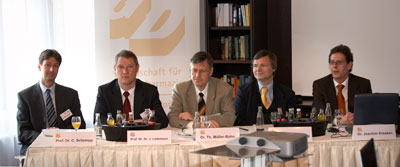 Die professionelle Presse- und Öffentlichkeitsarbeit der GD erfährt schon seit Jahren sowohl bei den Fach- als auch bei den Publikumsmedien starke Resonanz. Bei einer Pressekonferenz anlässlich der 12. GD-Jahrestagung in Berlin informierten Professor Dr. Christoph Schempp, der wissenschaftliche Tagungsleiter Professor Dr. Dr.-Ing. Jürgen Lademann, Dr. Thomas Müller-Bohn und der stellvertretende GD-Vorsitzende Professor Dr. Hans Christian Korting (von links) über neue Studiendaten von pflanzlichen Wirkstoffen in Dermatika und Kosmetika, über Nanopartikel als Trägersysteme für dermal applizierte Wirkstoffe, über aktuelle Trends in der Gesundheitsökonomie und über die Entwicklung innovativer Dermatika im deutschsprachigen Raum. Außerdem stellte der GD-Vorsitzende Dr. Joachim Kresken (rechts) die neue GD-Rageberbroschüre „Fußpilz“ und die Stellungnahme der GD Task Force „Licht.Hautkrebs.Prävention“ zur Wirksamkeitsprüfung und Kennzeichnung von Sonnenschutzmitteln vor.